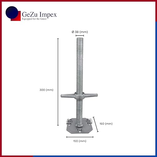 GeZu Impex® Gerüstspindel 300 mm, Ø 38 mm, Gewindefußplatte für Baugerüste feuerverzinkt, Gerüstfuß Gerüstfüße Spindel Fußplatte