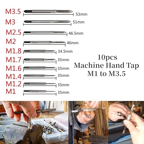 Gewindebohrer Set M1 bis M3,5, gerade, geriffelt, Handwerkzeug-Set, 10 Stück