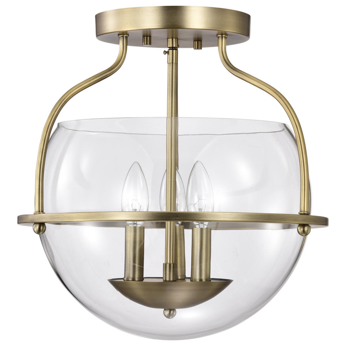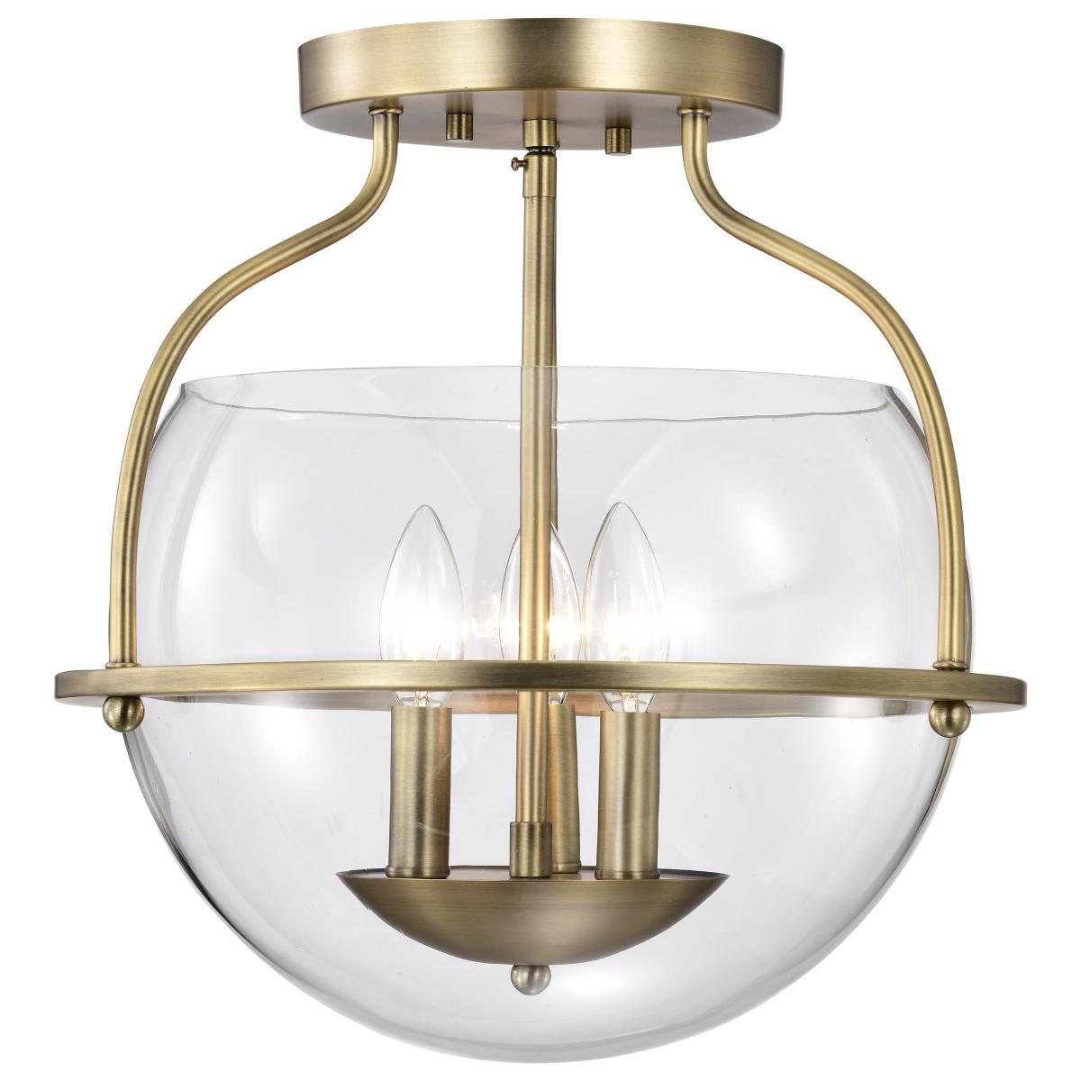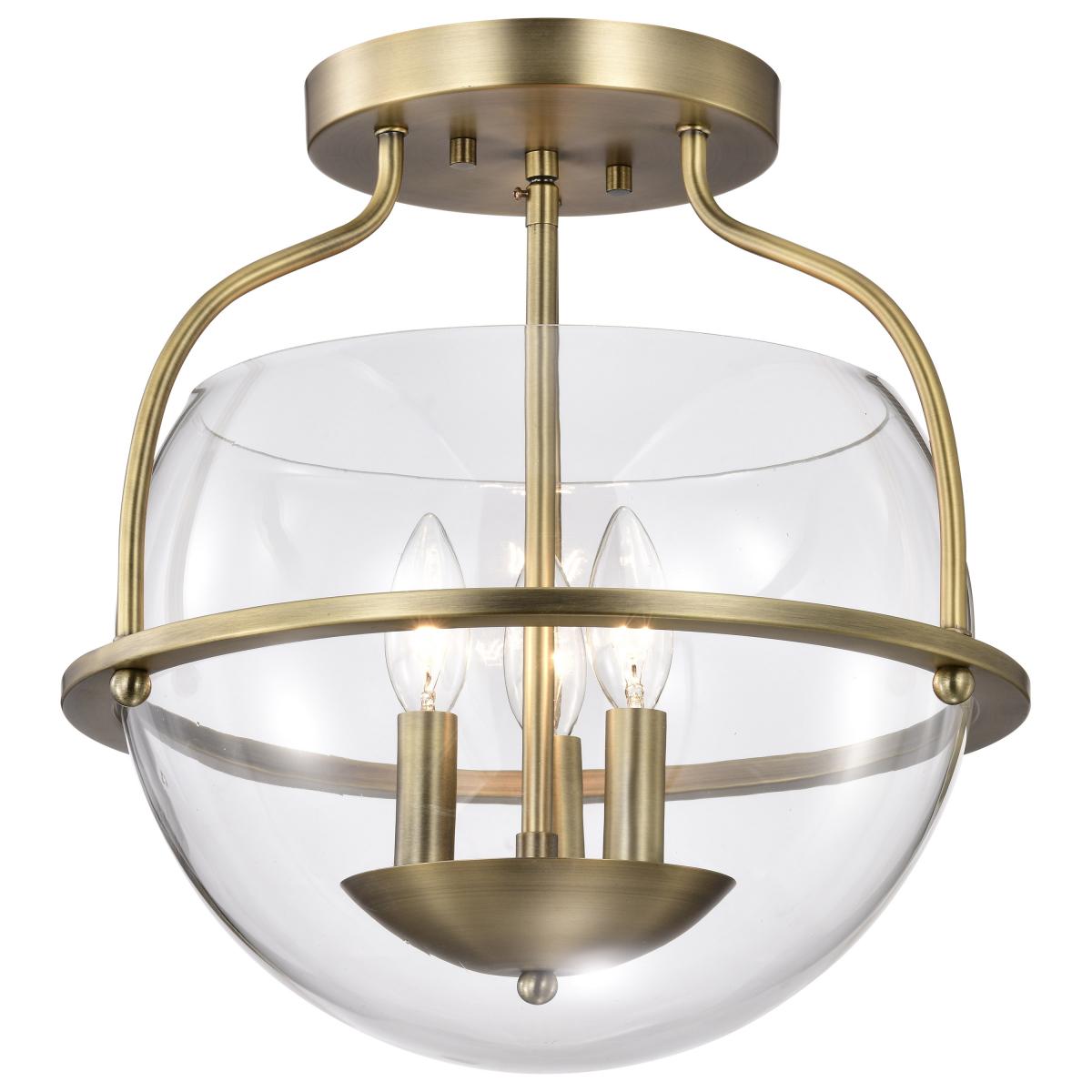 Satco Nuvo Amado 3 Light Semi Flush Mount Vintage Brass/Polished Nickel/Matte Black Finish With Clear Glass