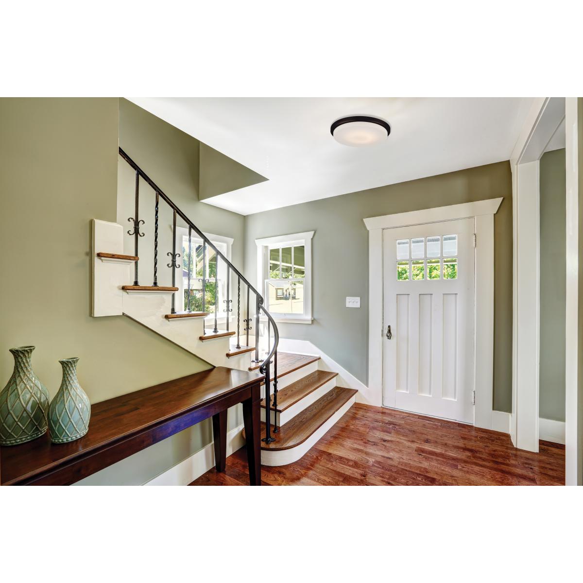 Satco Nuvo Dale LED Flush Mount Fixture With Opal Frosted Glass - Brushed Nickel/ Aged Bronze Finish - 3000K - 18W - 120V