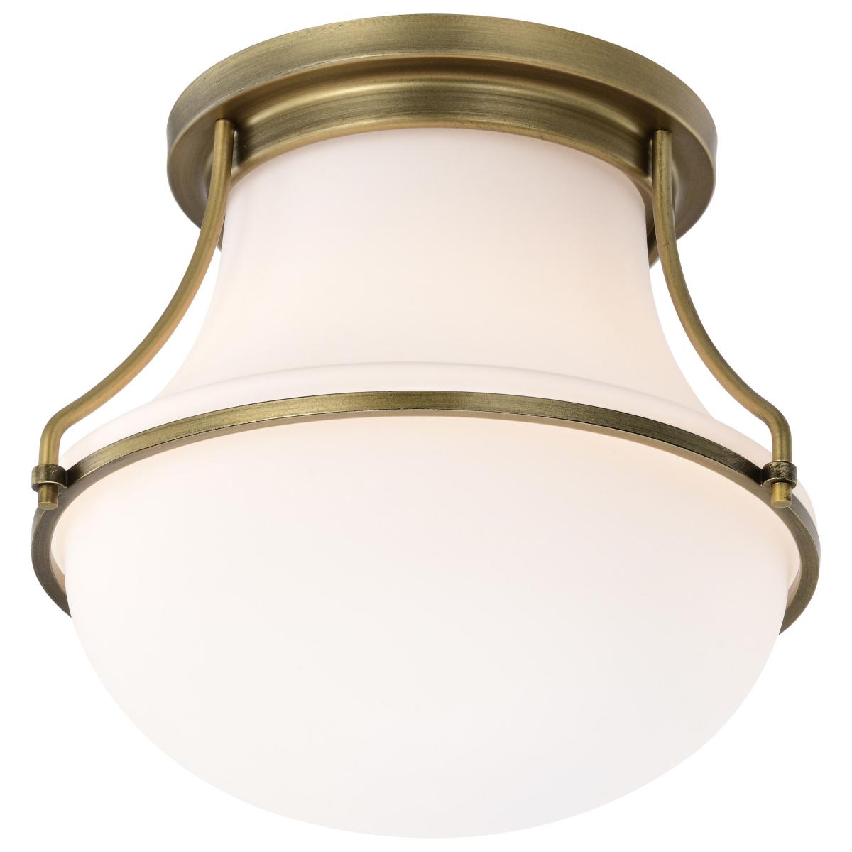 60-7860 VALDORA 1 LIGHT 10"" FLUSH Valdora 1 Light Flush Mount; 10 Inches; Natural Brass Finish; White Opal Glass
