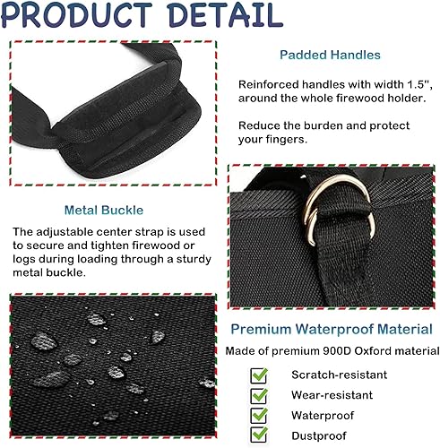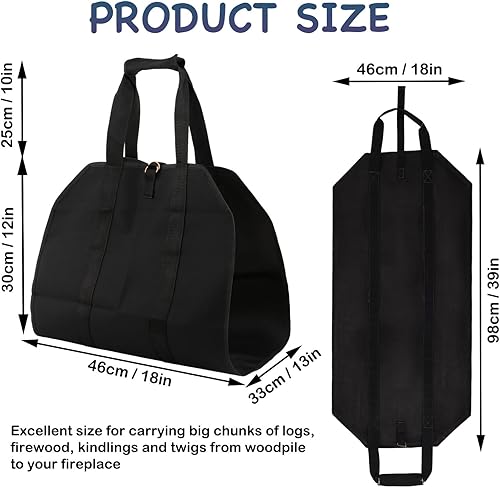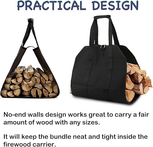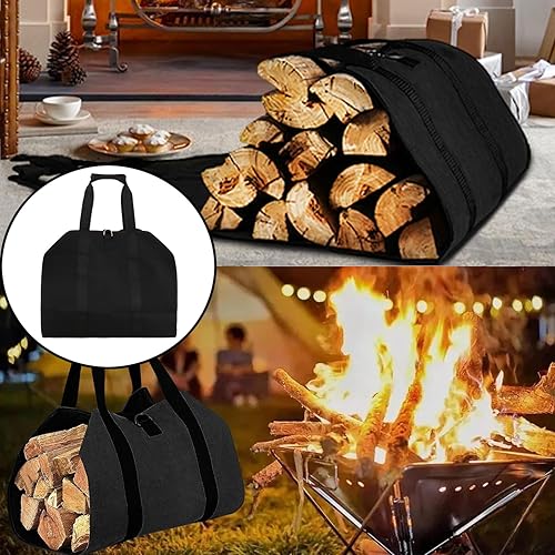Tceapoo Brennholz Log Tragetasche für Kaminholz, Faltbarer Kaminholztasche mit Verstärkter Griff, Kaminofen Zubehör für Drinnen und Draußen, Groß Tragetasche für Kamine, Holzöfen, Brennholz, Camping