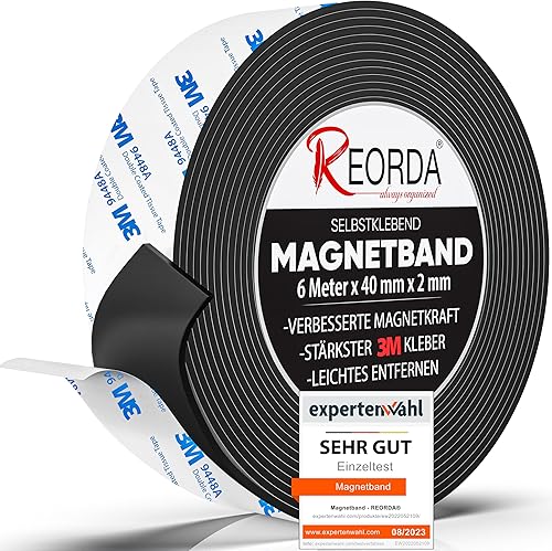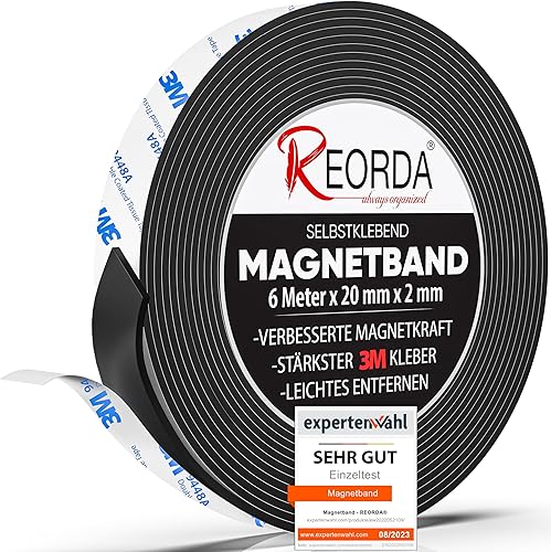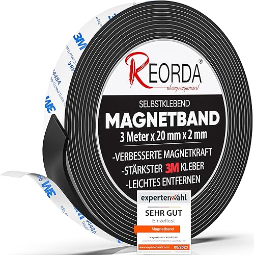 REORDA® Magnetband selbstklebend stark - Magnetstreifen selbstklebend mit starkem 3M Kleber - Magnetklebeband mit optimierter Magnetkraft - Magnet Klebeband