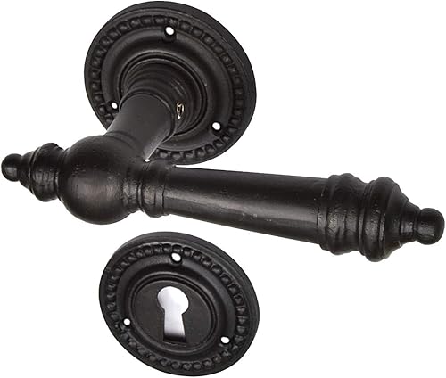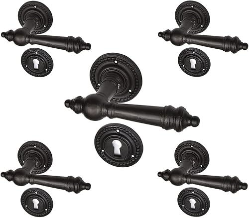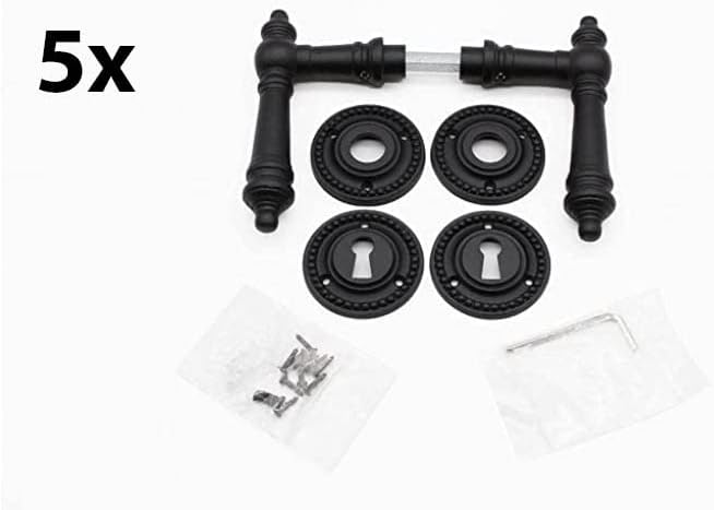 Ventano antiker Türbeschlag Türdrückergarnitur Türklinken und Rosetten für Zimmertüren (Buntbart) Modell 1900 Eisen schwarz