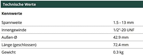 Metabo Schnellspannbohrfutter Futuro Plus, S2M, 13 mm, 1/2' (636620000) Spannweite: 1.5 - 13 mm, Innengewinde: 1/2' - 20 UNF, Außen-Ø: 42.9 mm