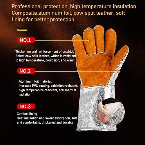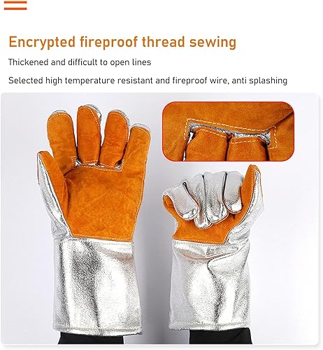 Hitzebeständige, 1 Paar Feuerfeste Schweißhandschuhe aus Rindsleder für das Backen in Gießereien
