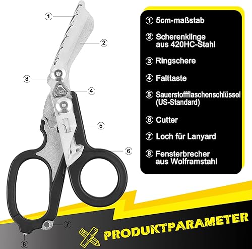TIHOOK 6 in 1 Rettungsschere, Rettungsdienst Schere, Raptor Response Notfallschere, Glasbrecher, Gurtschneider, Tragbare Schere für Camping im Freien, Multifunktionsschere Rettungsdienst Notfallschere