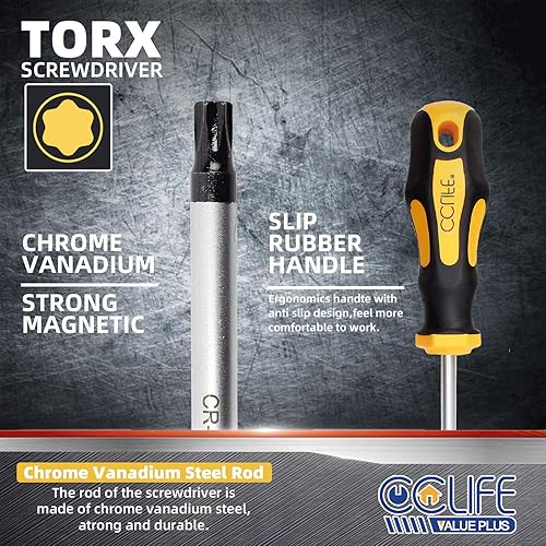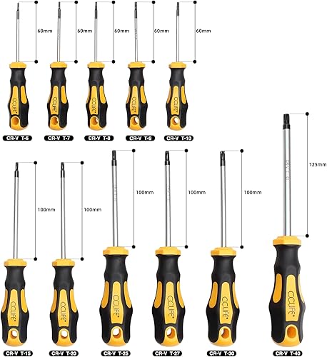 CCLIFE Torx Schraubendreher Set TX magnetisch T6-T40, 11 Stück mit Sternlochbohrung