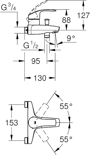 Grohe Eurosmart Wannenbatterie, Schweizer Variante, automatische Umstellung, 23461002, Chrom