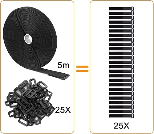 WSZJINB 5m x 2.5cm Kabelbinder Klettband wiederverschließbar mit 25 Schnalle, Schwarz Klett Kabelbinder, Klettverschluss Band für Kabelmanagement,Kabel Organizer