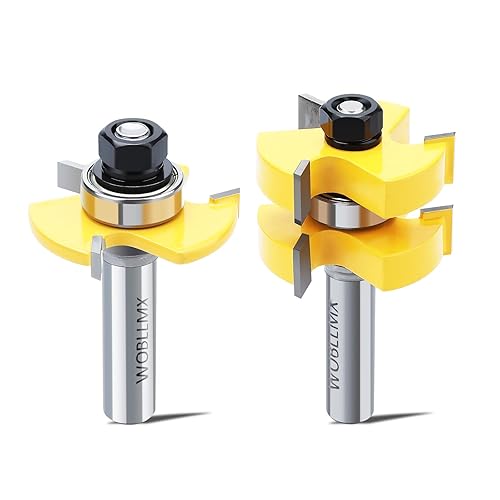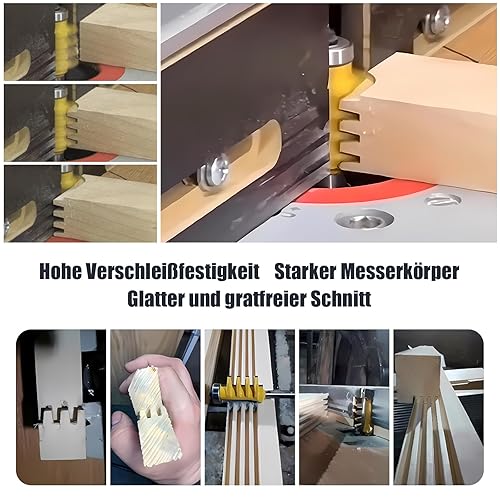 WOBLLMX 2 Stücke Groove und Tongue Zunge und Nut Set,8mm Schaft 3 Zähne Einstellbare T Form Holzbearbeitung Fräser Set,Oberfräser Holzbearbeitung Fräsen Holzschneider Werkzeug
