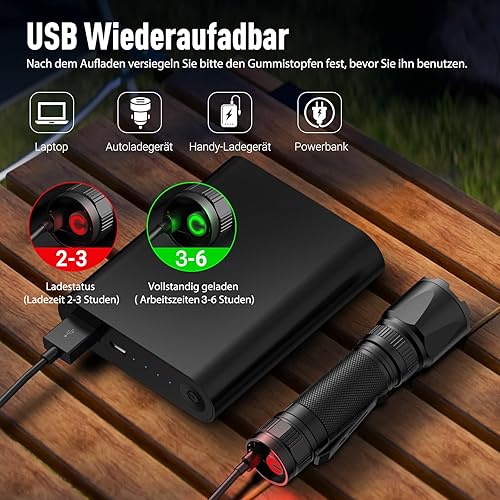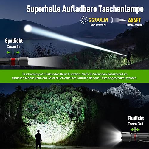 GEARLITE Taschenlampe Led Aufladbar, Superhelle Zoombare 2200 Lumen Mini Torch mit 3 Lichtmodi & Langer Betriebsdauer, IP65 Wasserdicht Taktische Handlampe für Camping Angeln Wandern Outdoor, Notfäll