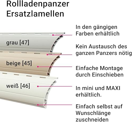 5 x Rollladenpanzer Lamelle Profil Ersatz für Rollladen Rolladen Ersatzlamelle in Mini oder Maxi, Farbe: grau, weiß oder beige (grau [47], K37P - 198cm)