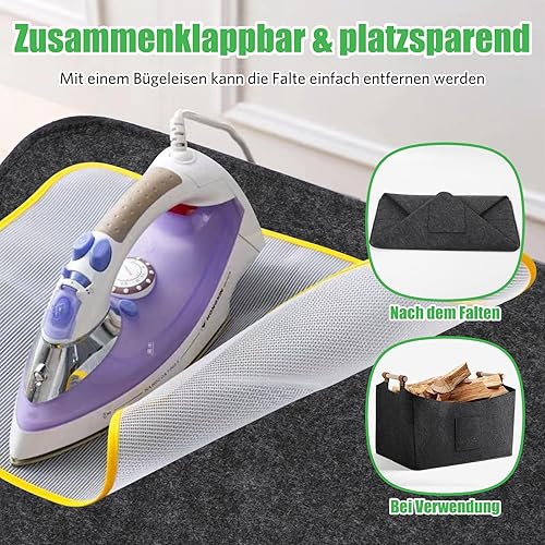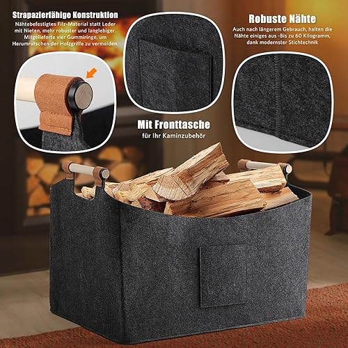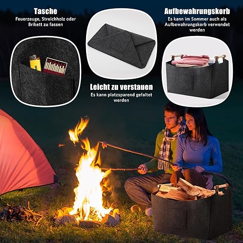 Ciberate XXXL 100L Filzkorb Holzkorb für Kaminholz Brennholzkorb Faltbare Filztasche mit rutschfester Griffe und Fronttasche Feuerholzkorb als Aufbewahrungskorb für Holz, Einkauf (60x40x40cm)