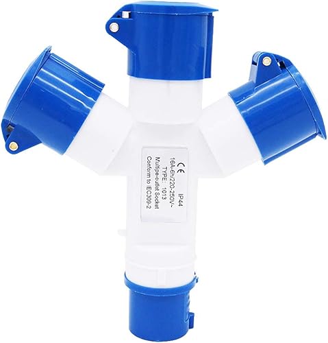 POFET Multifunktionale Industriebuchse 16 Ampere 3P IP44 380V 3-Wege-Netzanschluss Splitter-Blau