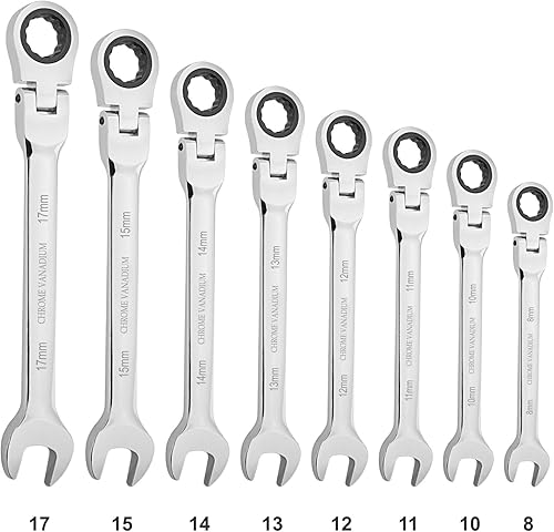 Gunpla 8 tlg. CR-V Ratschenring-Maulschlüssel set Metrisch Ratschenschlüssel-Set 8, 10, 11, 12, 13, 14, 15 and 17 mm