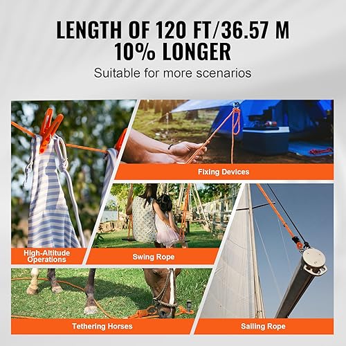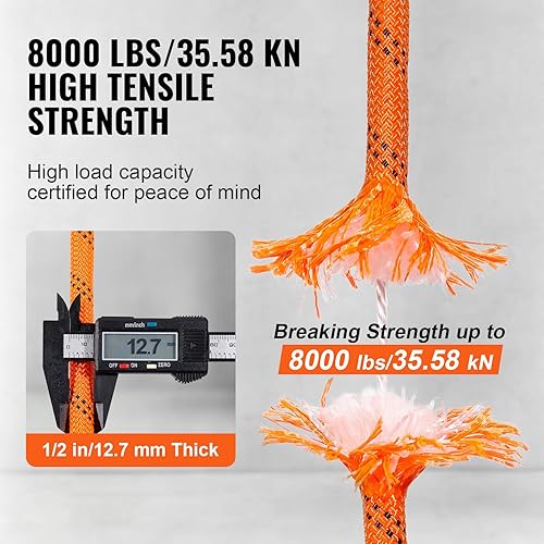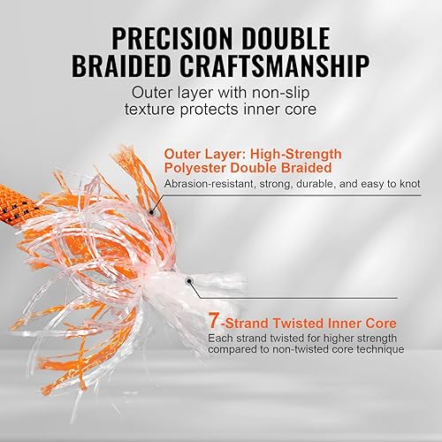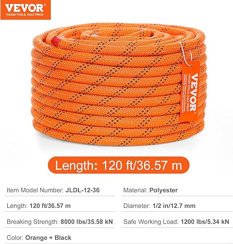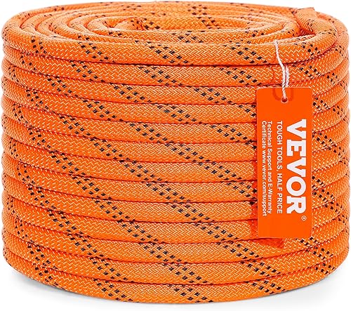 VEVOR Doppelt geflochtenes Polyesterseil, 1,27 cm x 67,7 m, 48 Stränge, 3600 kg Bruchfestigkeit, Outdoor-Kletterseil, Baumpflegeseil für Felswanderungen, Camping, Schaukeln, Abseilen, Rettung