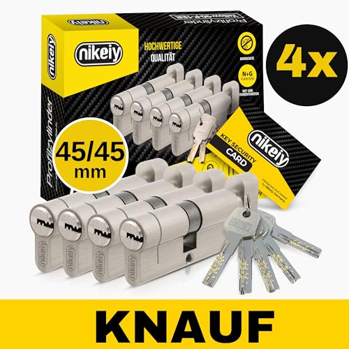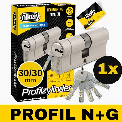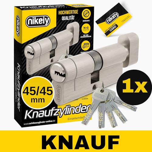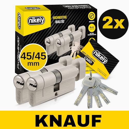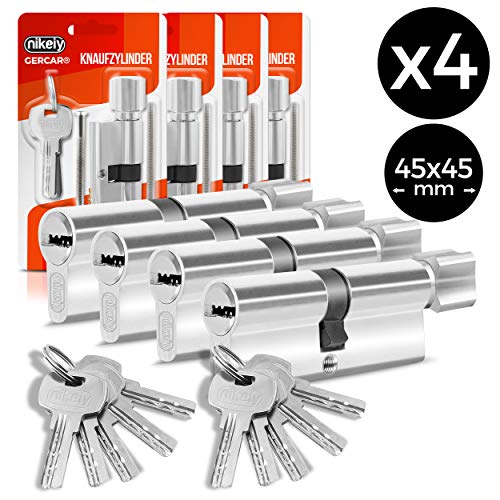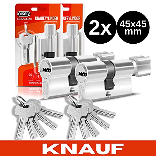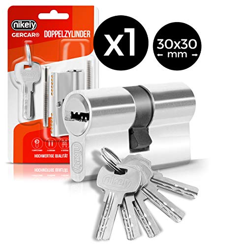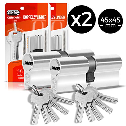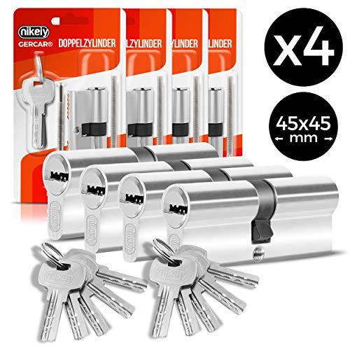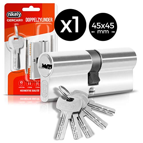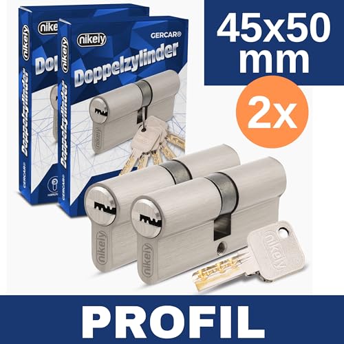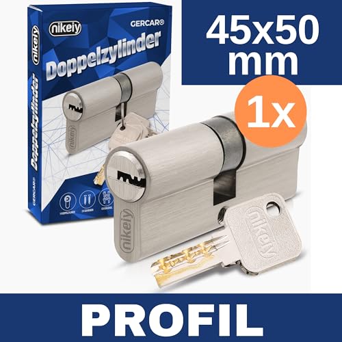 GERCAR Pro Profilzylinder 40/50 Massiver Schließzylinder Doppelzylinder Zylinderschloss Türschloss - aus Messing Vernickelt - inkl. 5 Schlüssel - Wendeschlüssel - Länge: 90 mm, A:40 B:50-1x