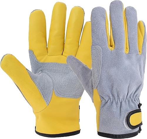EINSKEY Arbeitshandschuhe aus Ziegenleder für Damen & Herren – Dornenfeste Gartenhandschuhe, Robust für Baustelle, Holzarbeiten, Schweißarbeiten, Rosen schneiden und Haushalt