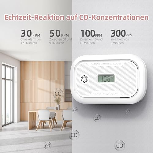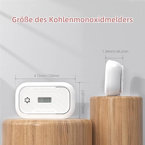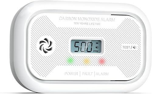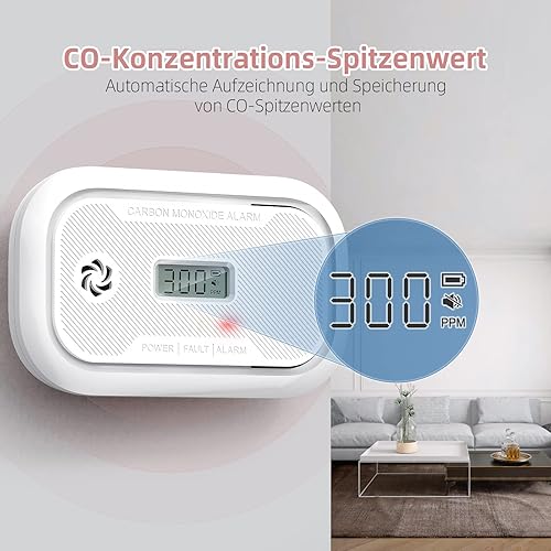Kohlenmonoxid Melder mit LCD-Anzeige, 10-Jahr CO Melder mit austauschbarer 3-Jahr Batterie, Tragbar CO-Warnmelder mit Spitzenwertspeicher für RV/Schiff/Zimmer, EN50291 Zertifiziert, 1Stück