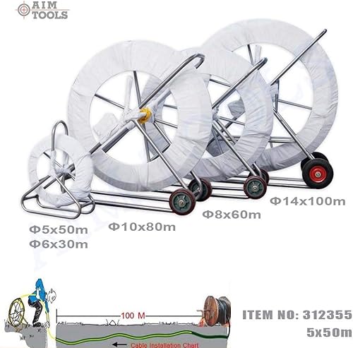 KATSU Glasfaserstab 8x100M Fischband Fiberglas Kabel Rad Rohr Rodder mit Stahlständer und Bremse, Glasfaser Elektrokabel Installationswerkzeug, Kabeleinfädler Fischbandabzieher