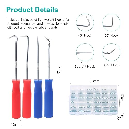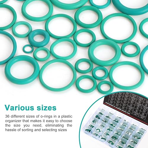 WiMas 495PCS 36 Größen Gummi O-Ring Dichtung O-Ringe Tülle Assorted Nitril O-Ringe Tülle Sortiment mit 4PCS Pick und Installation Remover Tools