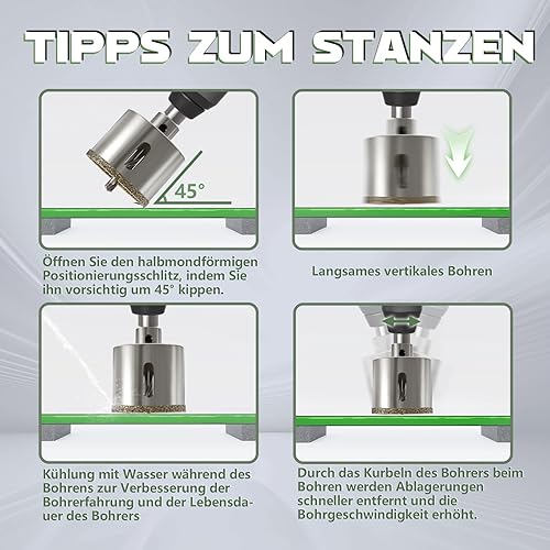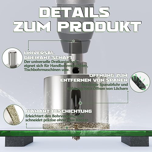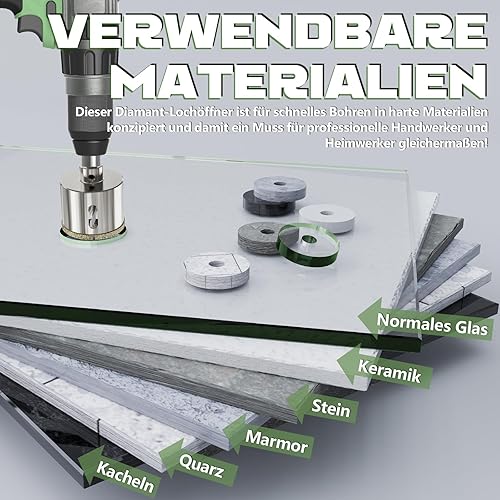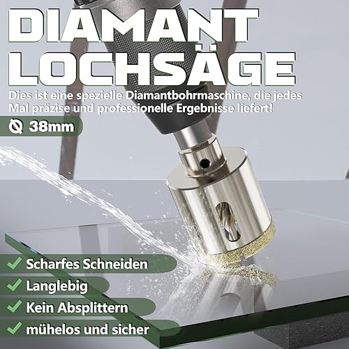 CSOOM 40mm Glasbohrer Lochsäge mit 2*Zentrierbohrer,Bohrkron Fliesenbohrer für Glas, Fliese, keramisches, Marmor, Kalkstein