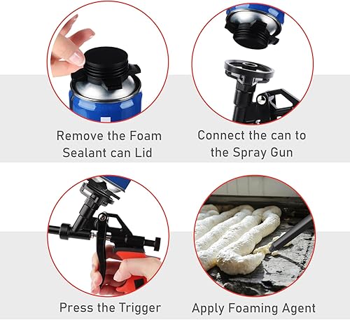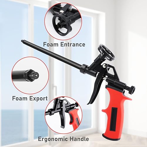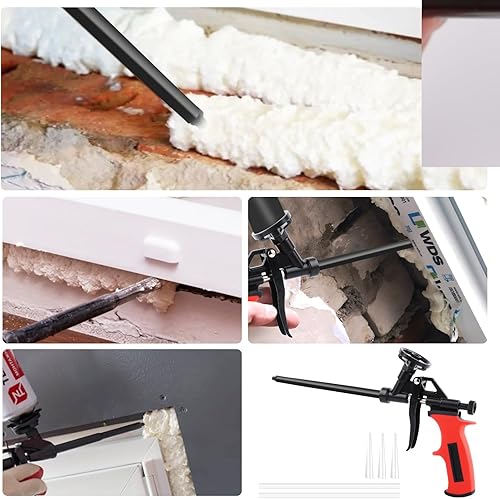 TNOMSNO Schaumpistole, PU Schaumpistole Teflon-beschichtete Bauschaumpistole, Schaumpistole mit Schalter No-Clean mit 5 Schläuchen, Schaumpistole zum Abdichten, Füllen
