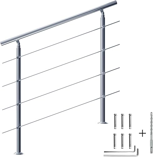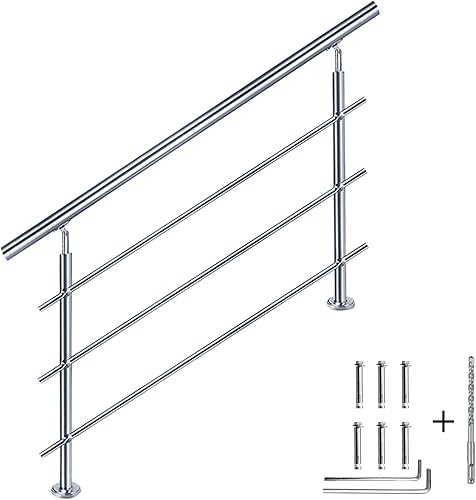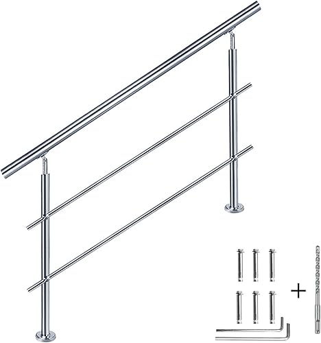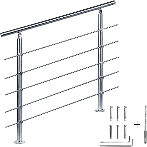 CAVATINY Edelstahl Handlauf Geländer für Treppen Brüstung Balkon mit 2 Querstreben - Innen und Außen Handlauf Geländer Treppengeländer Edelstahl Brüstung Balkon (100CM, 2 Querstreben)