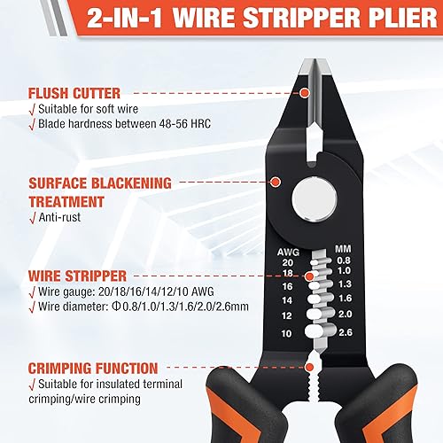 ValueMax 2-IN-1 Abisolierzange, Professionelle Abisolierzange und Crimpzange, Multifunktionales Abisolierwerkzeug Entmanteler, Drahtschneider, Kabelschneider, für Elektriker, Heimwerker und Profis