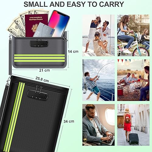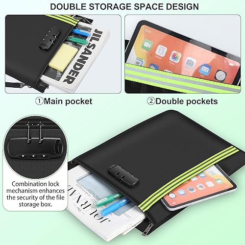 Feuerfeste und Wasserdichte Tasche mit Schloss - 2 Stück Dokumentetasches, Brieftasche mit Zahlenschloss Feuerfeste Aktentasche für Passport、 Geld、 Zertifikate、 Vertrag und Wertsachen.