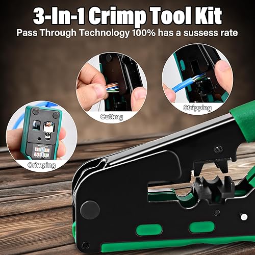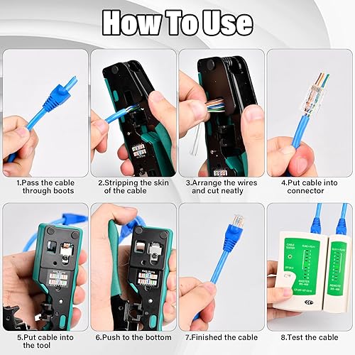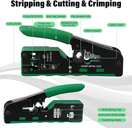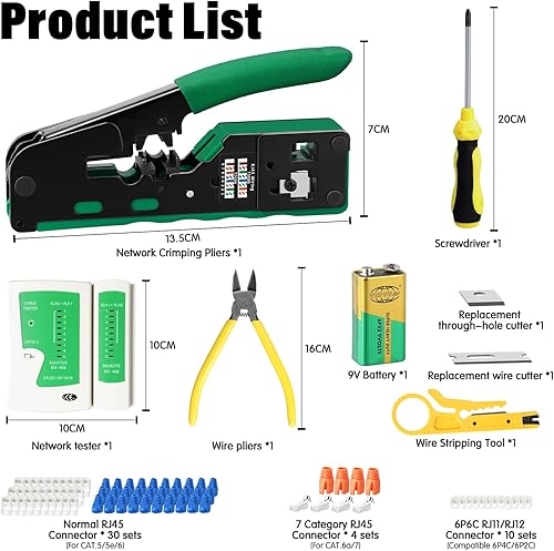 RJ45 Crimpzange Set, Netzwerk Werkzeug Set mit 4 x Cat7/6a RJ45 Stecker, 30 x CAT.5/5e/6 RJ45 Stecker, 10 x 6P6C RJ11/RJ12 Stecker, RJ45/RJ11/RJ12 Reparaturwerkzeuge mit Netzwerktester