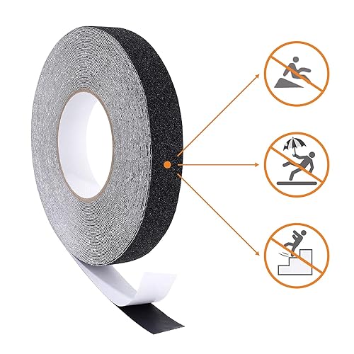 MaoXinTek Antirutsch Klebeband Streifen mit Selbstklebend, 2.5cm x 20m Treppe Stufen Band Kleber Rutschfest Klebeband, Hohe Traktion Pad für Bodenbelag innen- und Außenbereich, Schwarz