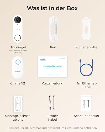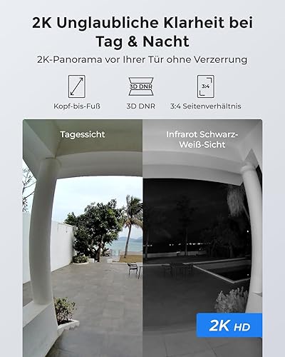 Reolink 5MP Video-Türklingel PoE-Kamera mit Chime, 3:4 Kopf-zu-Fuß-Ansicht, 2-Wege-Audio, Personen-/Paket-Erkennung, Wasserdicht, Smart-Alarme, unterstützt Reolink NVR, Verkabelt, Version 2024, Weiß