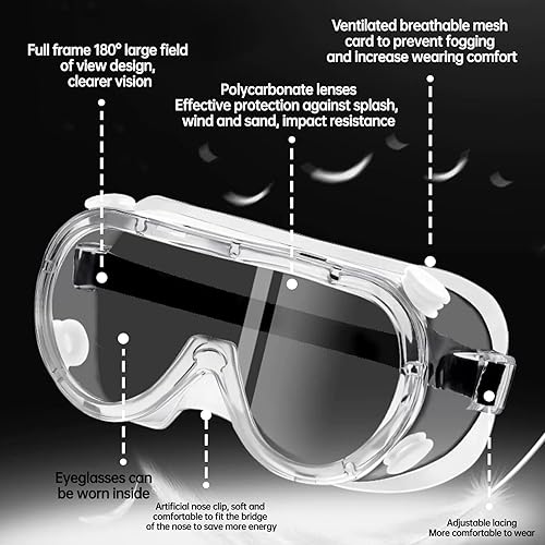 Canzoon 2 Stück Sicherheitsbrille Schutzbrille Arbeitsbrille Stoßfest, Anti, Fog, Staubdicht, Transparente Schutzbrille auch für Brillenträger geeignet