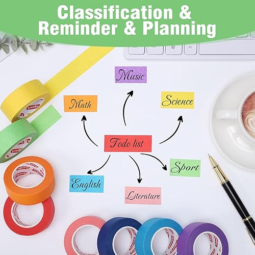 Fyguard 8 Rolle Kreppband Bunt, 23mm x 13m Maler Klebeband Regenbogenfarbenes Dekoband Malerkrepp Papier für Kinder Studenten DIY Scrapbooking Handwerk
