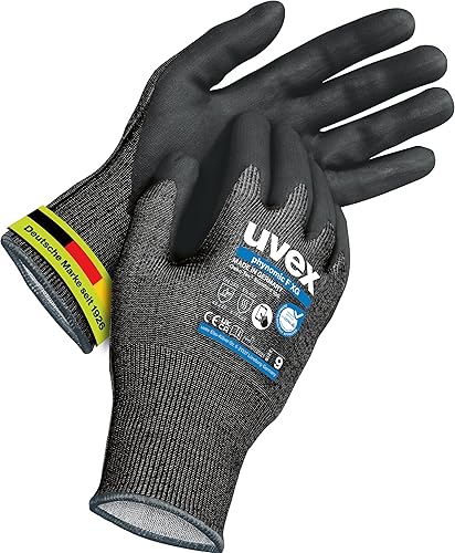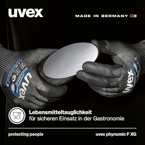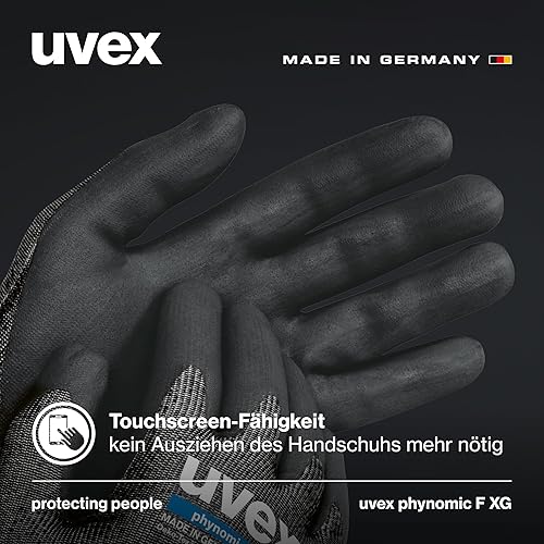 Uvex phynomic F XG, 1 Paar - Schnittschutz - & Grip-Handschuh für feuchte & ölige Bereiche - feinfühlig & abriebfest - schwarz