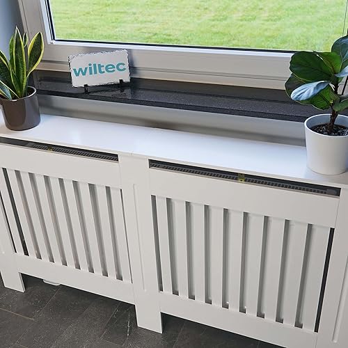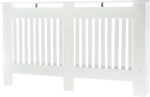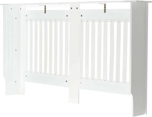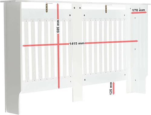 Toboli Heizkörperverkleidung weiß 172 x 19 x 82 cm, Heizkörperabdeckung aus MDF, Holzverkleidung für Heizkörper in Lamellenoptik
