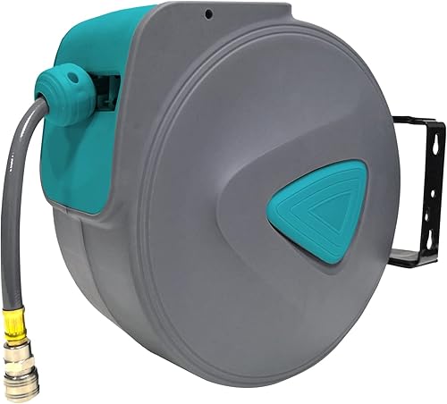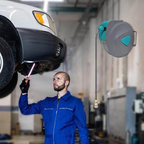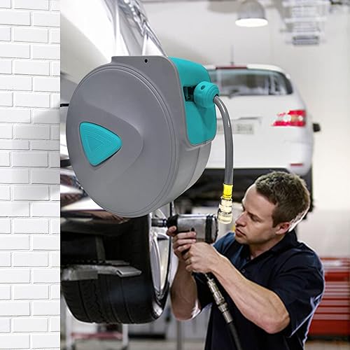 HENGMEI 20m Druckluftschlauch Druckluft Schlauchtrommel 1/4' Trommel Wandschlauchhalter Aufroller automatisch Schlauchaufroller
