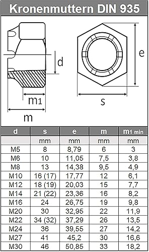 Kronenmutter M16 DIN 935 Edelstahl A2 (1 Stück) - Sicherungsmutter