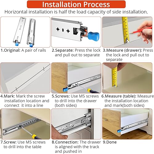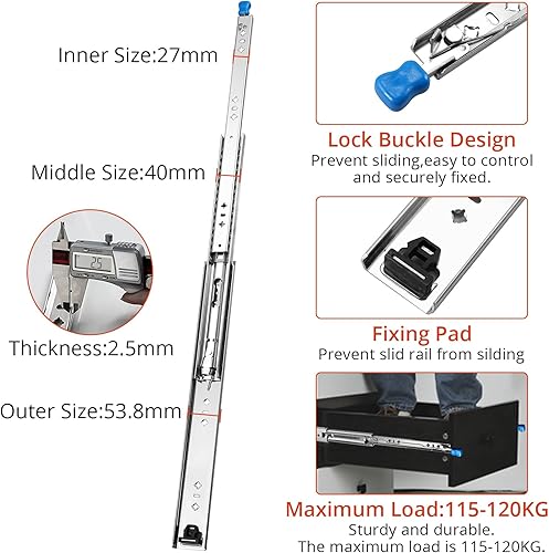 GETLITOOL 1 Paar (2 Stück) Schwerlast Schubladenschiene 500 mm, Schwerlastauszüge Vollauszug mit Lock-in/out Einrastfunktion Schwere Kugellager Schubladenschienen inkl. Schloss bis 120KG Tragkraft