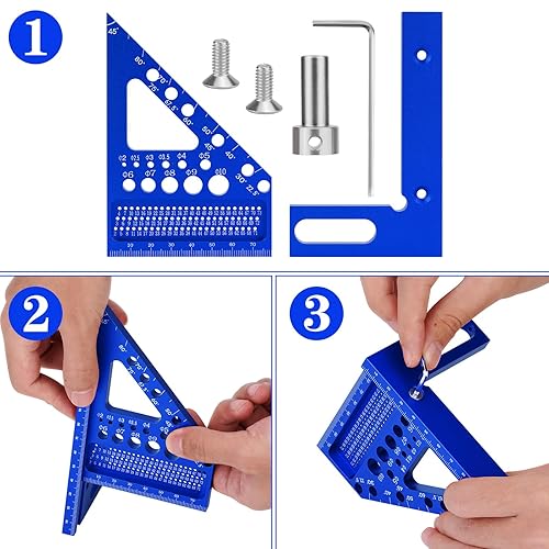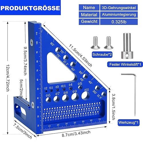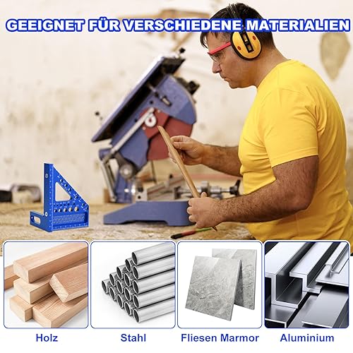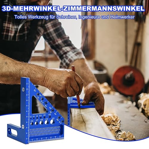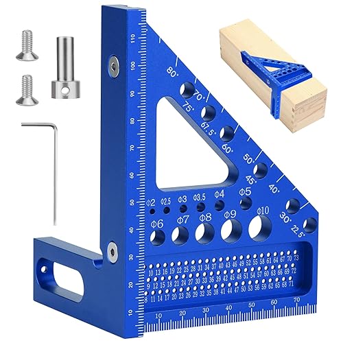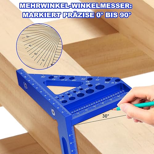 POFIBO Zimmermannswinkel Winkelmesser Anschlagwinkel - 22,5-90 Grad Aluminiumlegierung 3D-Gehrungswinkel, inkl. Tieflochmarker, für präzises Anreißen und Zeichnen, für Schreiner und Ingenieure (Rot)