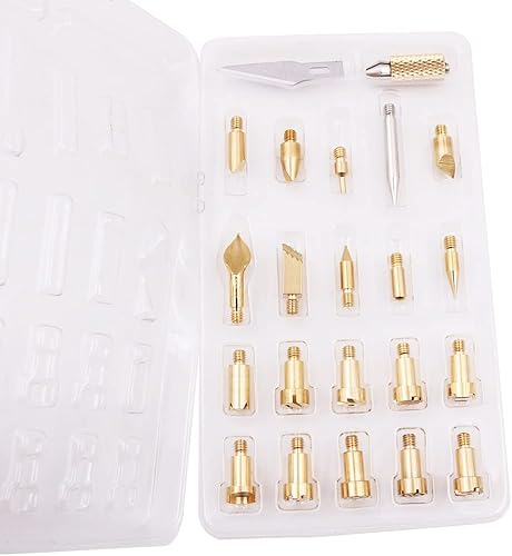 VOANZO Holzbrennstiftspitzen, Schablonen-Set, Löten, Brandmalerei, Arbeiten, Schnitzen, Prägen, Schnitzen, Eisen, Metallbrennstiftspitzen für Holzbrennwerkzeug, 23 Stück