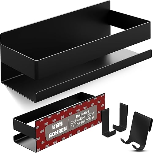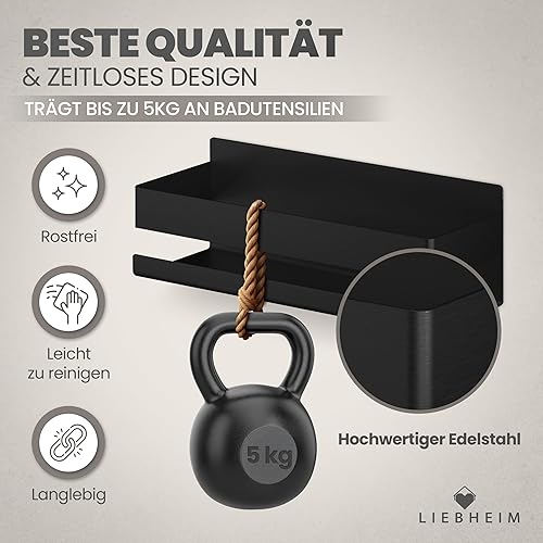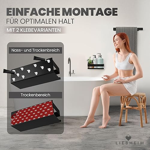 LIEBHEIM Duschablage Duschkorb Badregal ohne Bohren - Montage mit Industrie Klebeband oder Kraftkleber - Badablage - Edelstahl S304 gebürstet