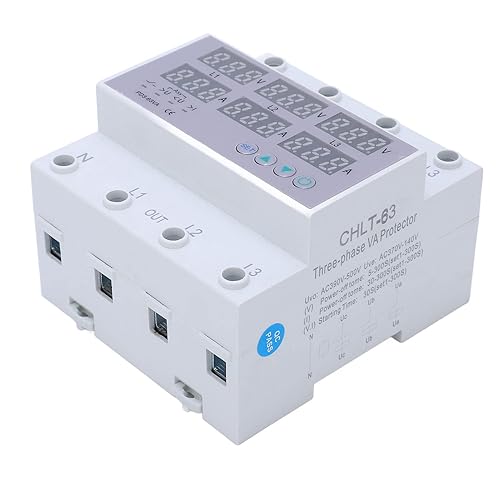 3-Phasen-DIN, Schienenvoltmeter Amperemeter Automatische Überspannung Schnelle Reaktion Sicherer Werkseitiger Überstromschutz AC 390‑500 V 63 A PC-Überspannungsschutz (63A)