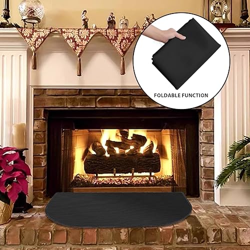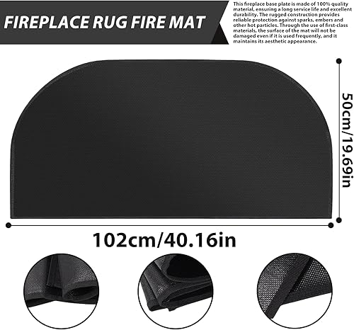 PRITOK Kaminbodenplatte Feuerfeste Unterlage Feuerschutzmatte: 102 x 50 cm Funkenschutzplatte für Kaminofen, Hitzeschutzmatte Bodenschutzmatte Halbrunder Herdvorleger für Grills, Camping, Kamin, Rasen