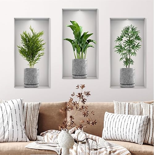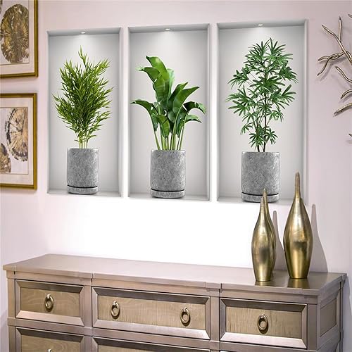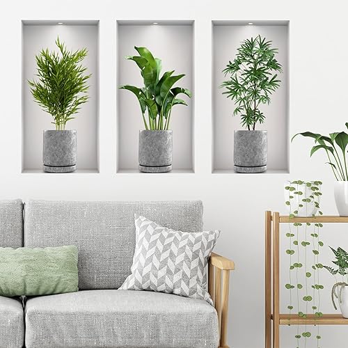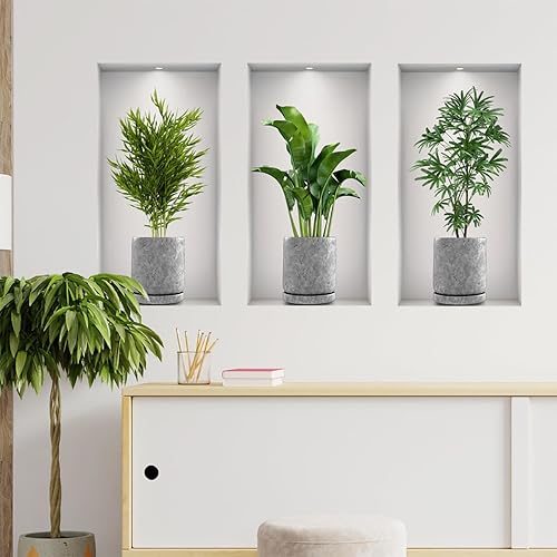 3 Stücke 3D Vase Wandaufkleber Pflanzen Wandtattoo Küche Wanddeko Geeignet zum Dekorieren von Schlafzimmern Wohnzimmern Türen und Fenstern Hotels und zum Abdecken Beschädigter Wände