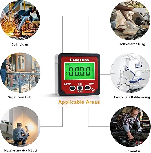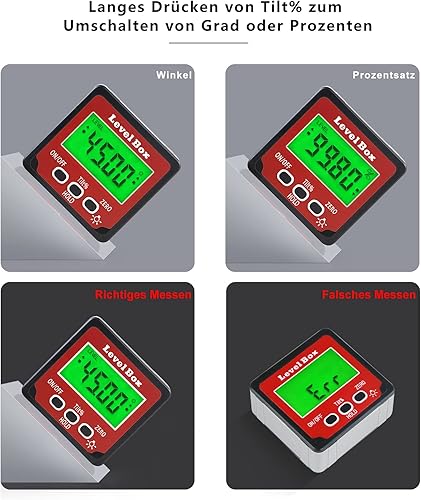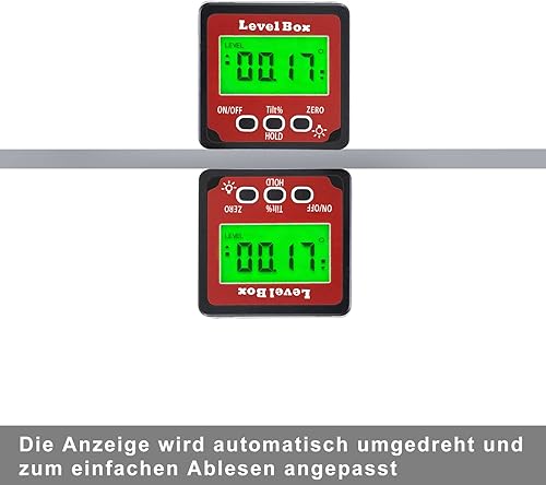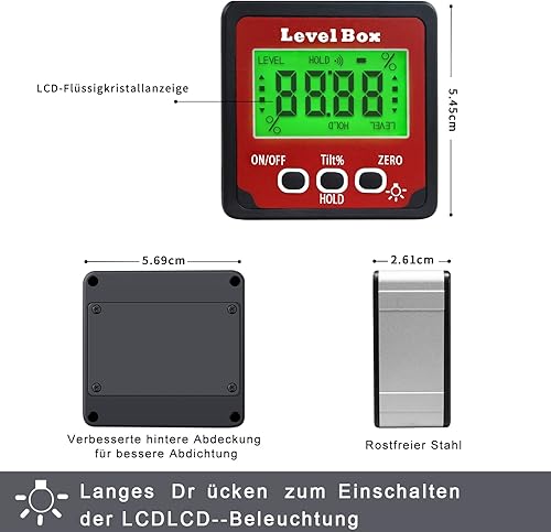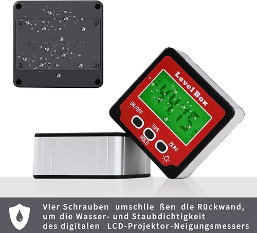 Digital LCD Winkelmesser mit Magnetfuß, IP54 Wasserdicht Neigungsmesser Bevel Box, Level Box Winkelmessgerät Inklinometer (Batterie enthalten)