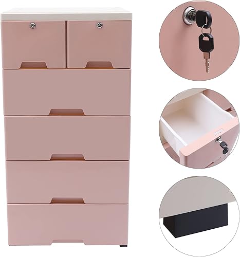 Komode, 6-Stock Kunststoffschrank Aufbewahrungsschrank für Schubladen, Multifunktional Schrank mit Vier Rädern, Mobiler Schubladenschrank, Mit Schloss Schränke, 50x35x102cm (Blau)