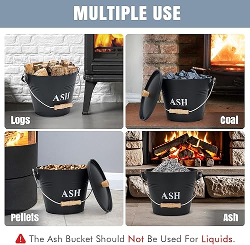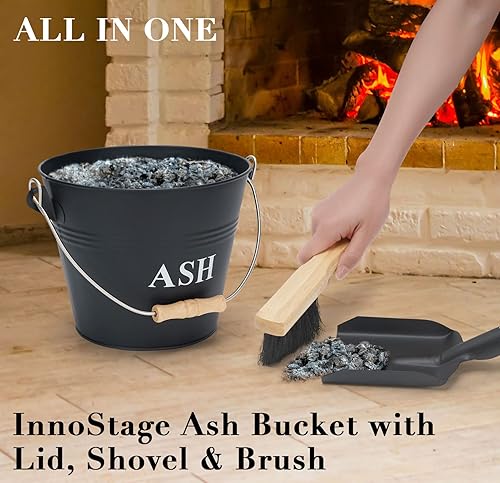 INNO Stage Ascheeimer mit Deckel und Griff, verzinkter Eisenascheimer für Kamin, Feuerstellen und Holzofen